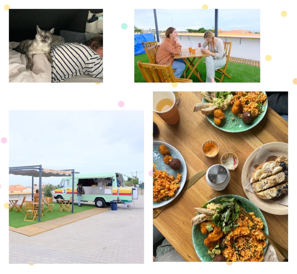 Dann sind wir los in Richtung Ericeira, auf dem Weg haben wir bei einem Food Truck angehalten und da Reste von unserem Kichererbsen Curry letztens mit 3 kleinen Snacks von dem Food Truck gegessen
