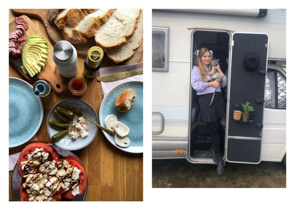 Mittags haben wir noch im camper gebruncht mit spanischer Riesen Tomate, das sind 3 Scheiben auf dem Teller.